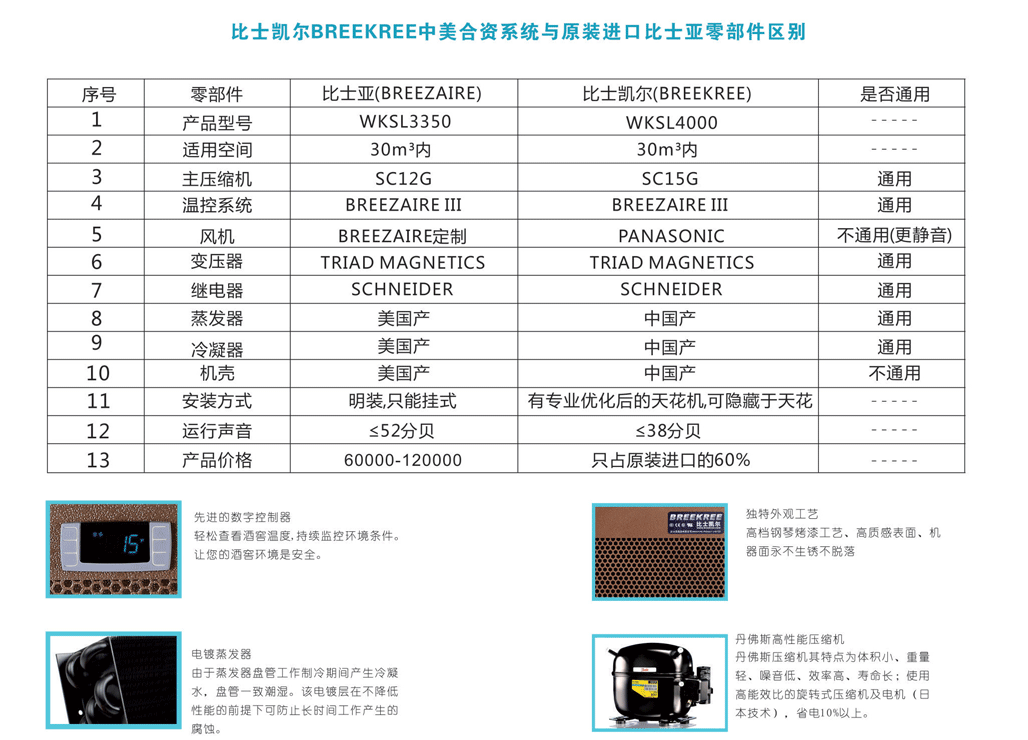 比士凱爾[BREEKREE]分體機WKSL4000酒窖空調-與(yǔ)原裝進口機器的對比