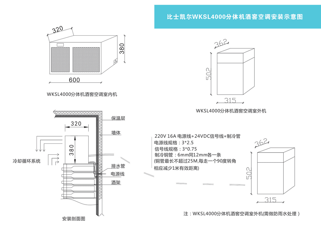 比士凱(kǎi)爾[BREEKREE]分(fèn)體機WKSL4000酒窖空調-機器(qì)尺寸