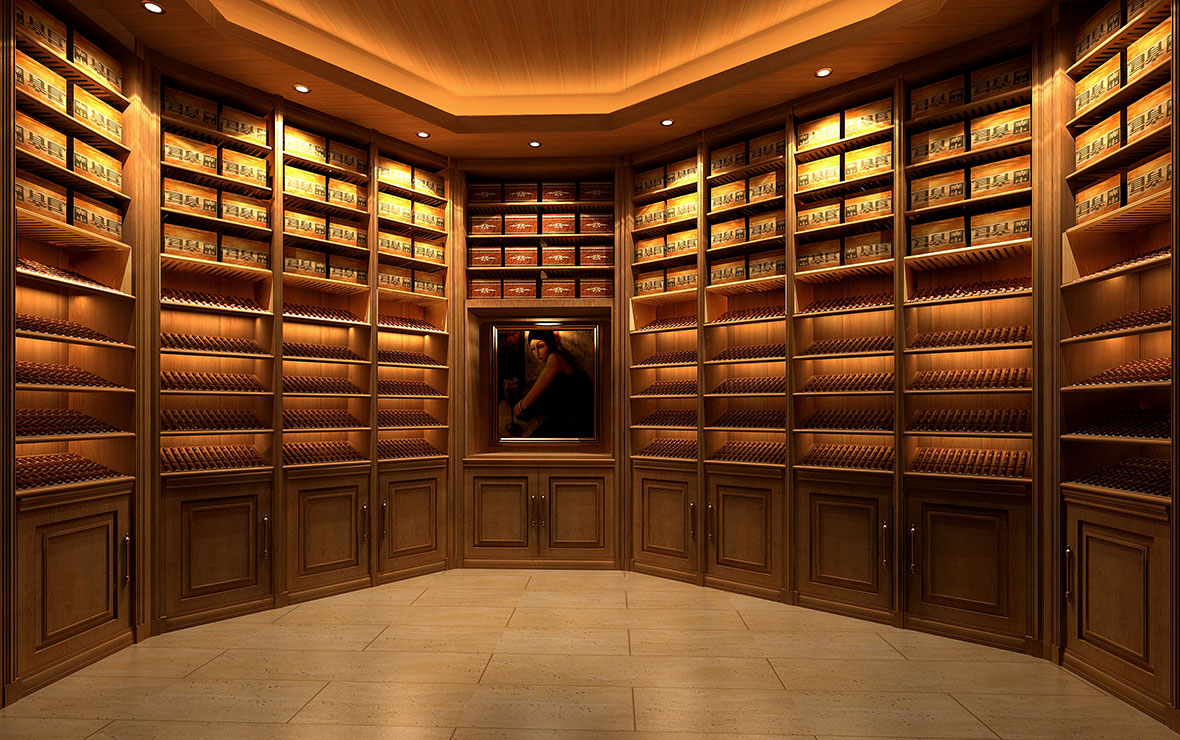 私人雪茄房設(shè)計效果圖(tú)-西班牙雪鬆木製作的(de)恒溫恒濕私人雪茄房
