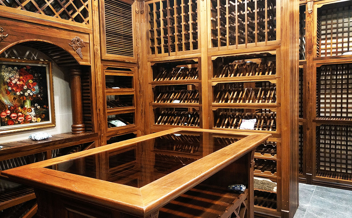 廣州從化億城泉說家庭柚木實木紅酒酒窖設(shè)計圖片-A