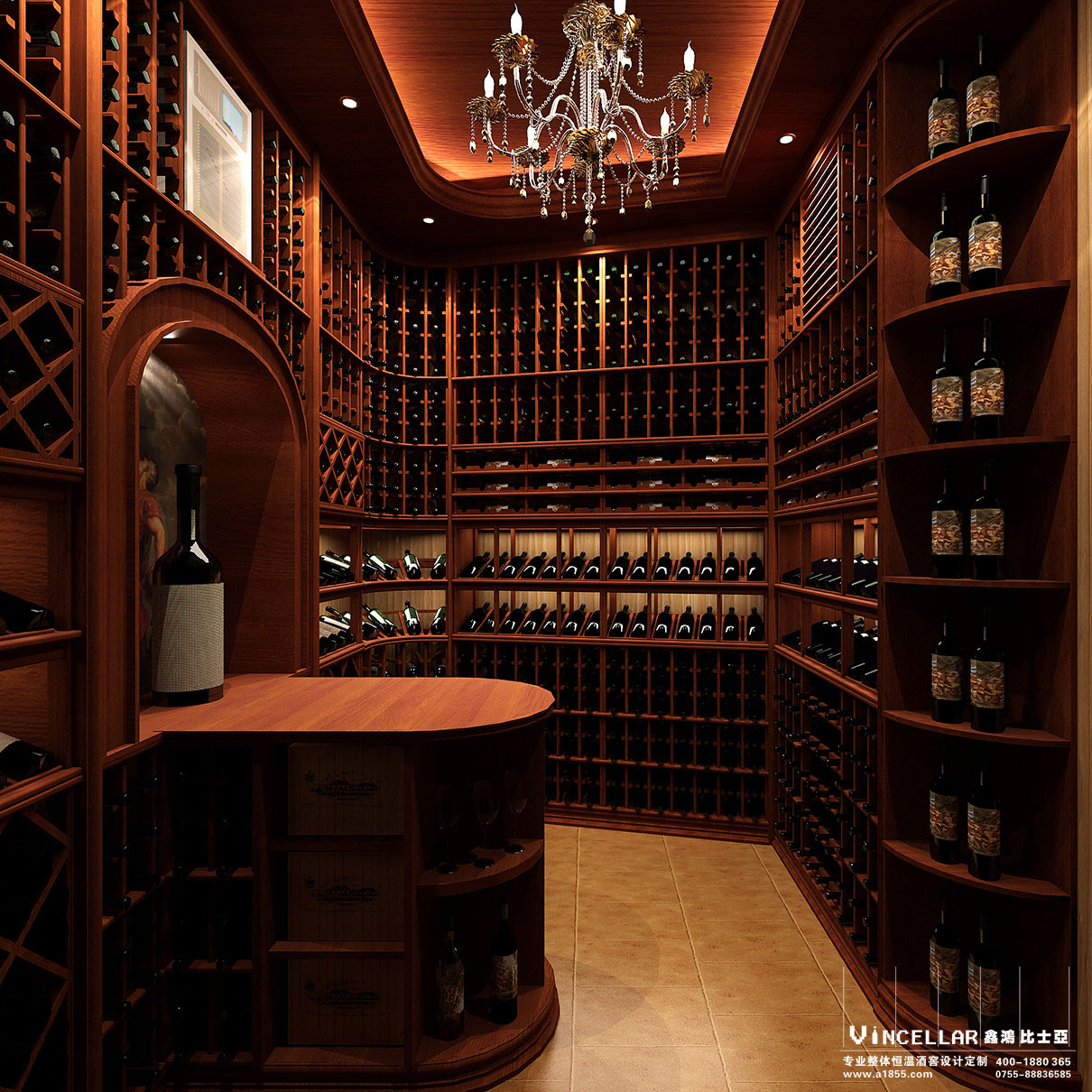 酒窖燈光:歐式吊燈,燈池做LED燈帶