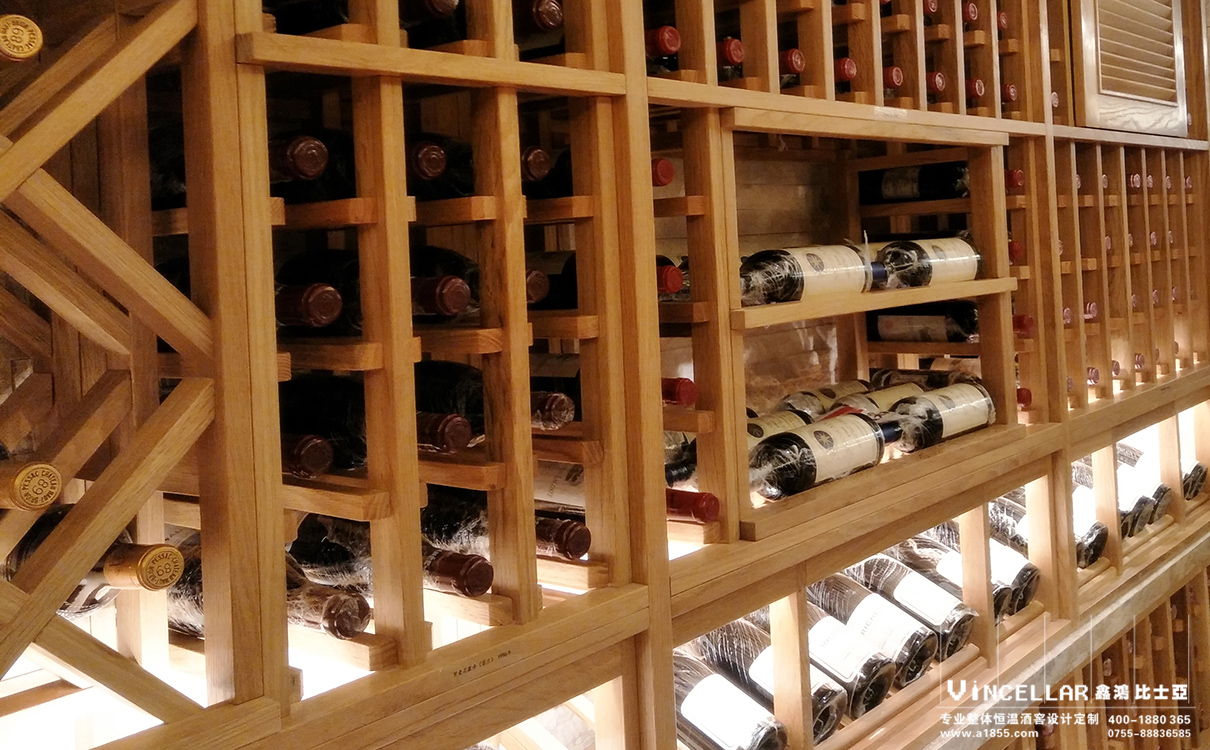 深圳恒大集團總部酒窖設計(jì)方案-美國(guó)紅(hóng)橡木實木酒架