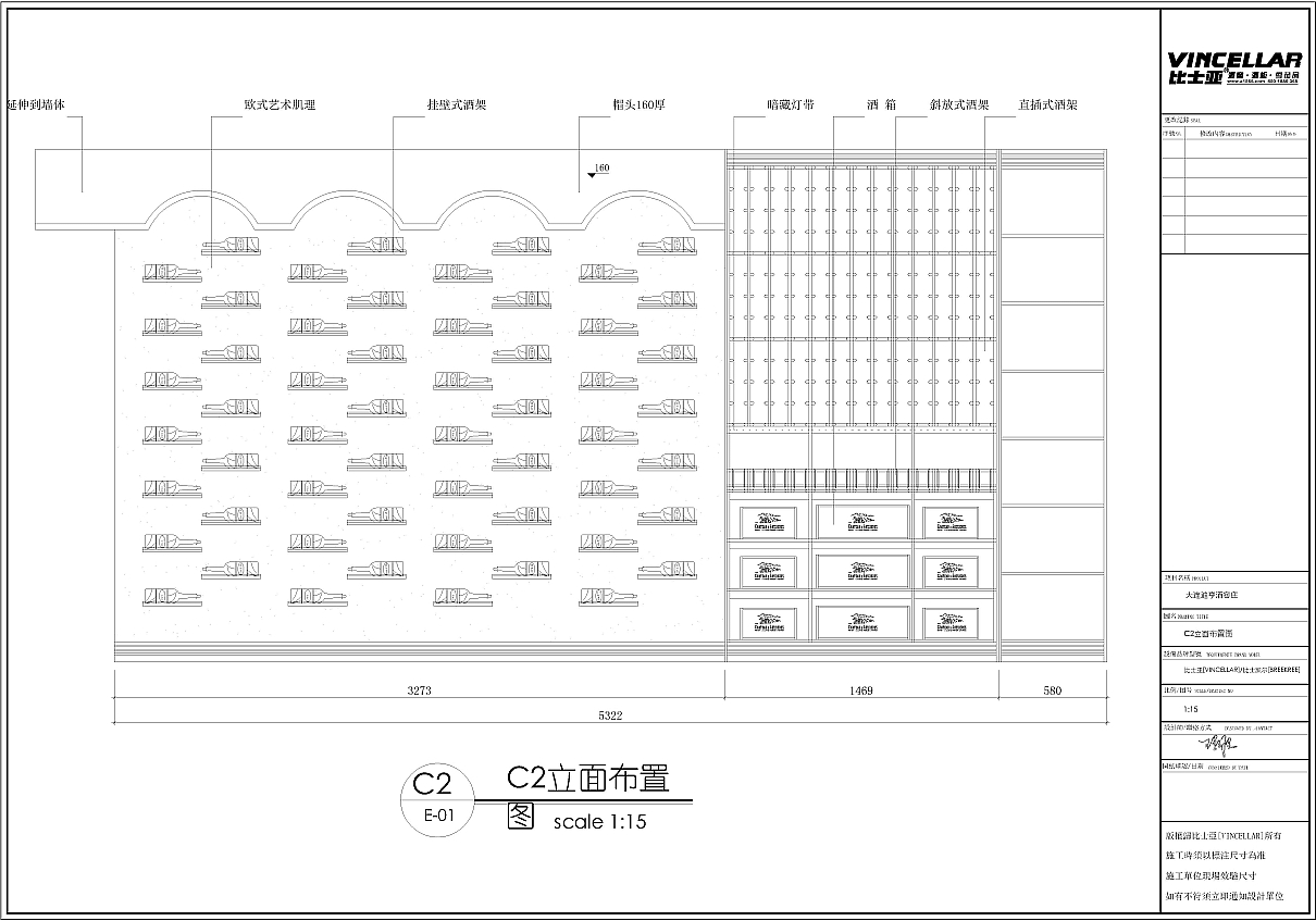 遼寧大連迪亨酒莊裝修設計效果圖及(jí)完工後酒莊圖片-C1立麵布置圖(tú)