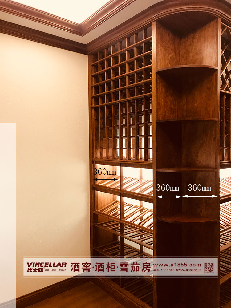酒(jiǔ)窖圖片中酒(jiǔ)櫃酒架的尺寸深度為360mm |