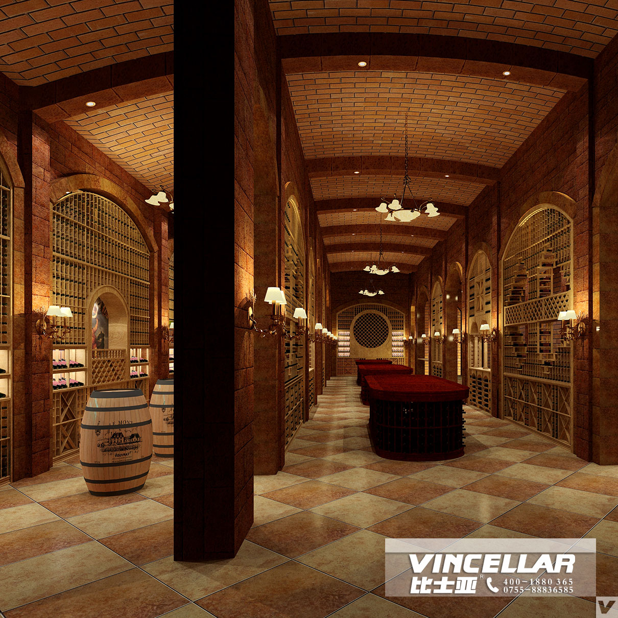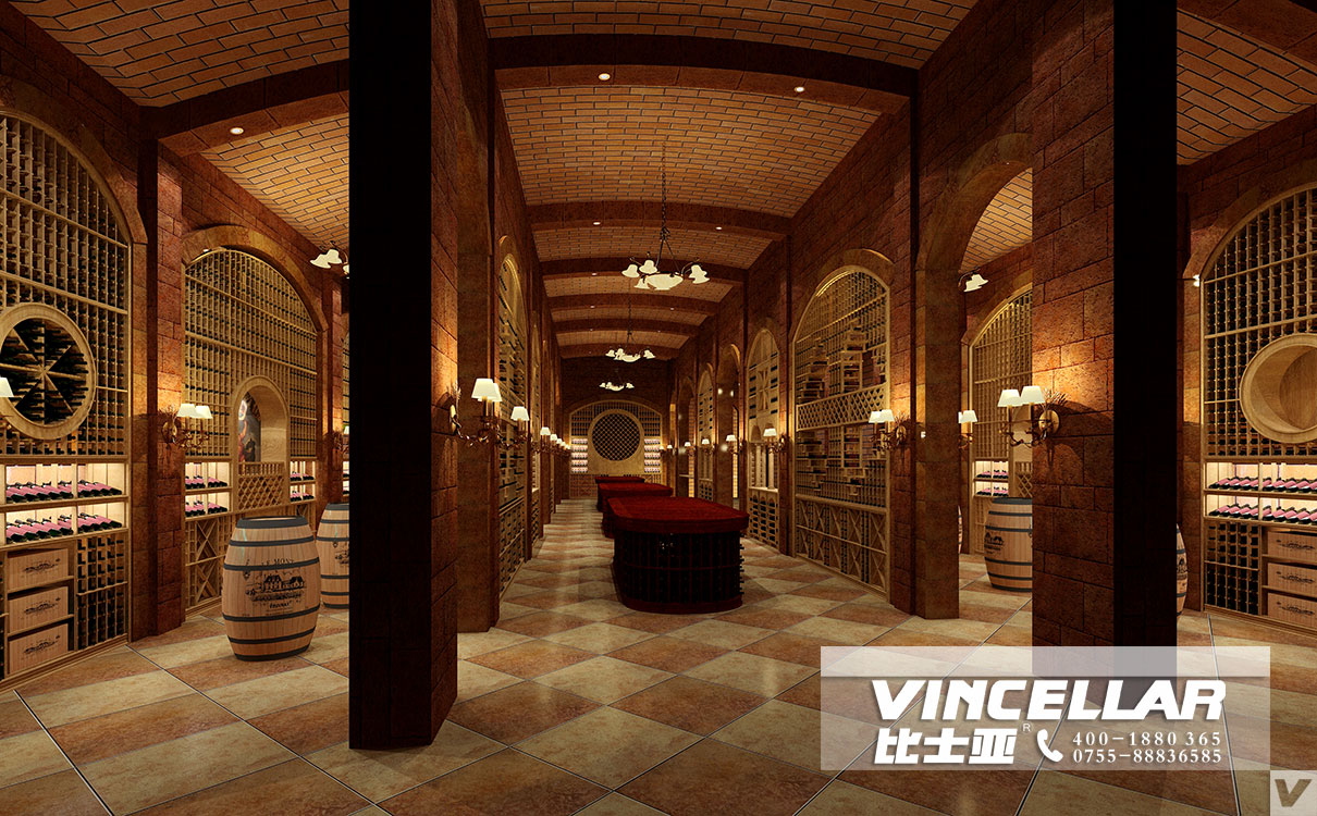 VIP樣式地下酒窖設計效果圖片整個項(xiàng)目位於別(bié)墅地下室,采用磚牆風格牆麵,酒架以個人VIP格式為主,可分為存24支/48支/96支/192支等不同數量紅酒(jiǔ)的單獨儲存空間,適合各類葡萄酒愛好者儲存需求