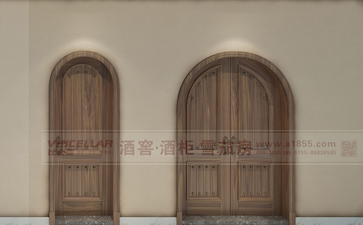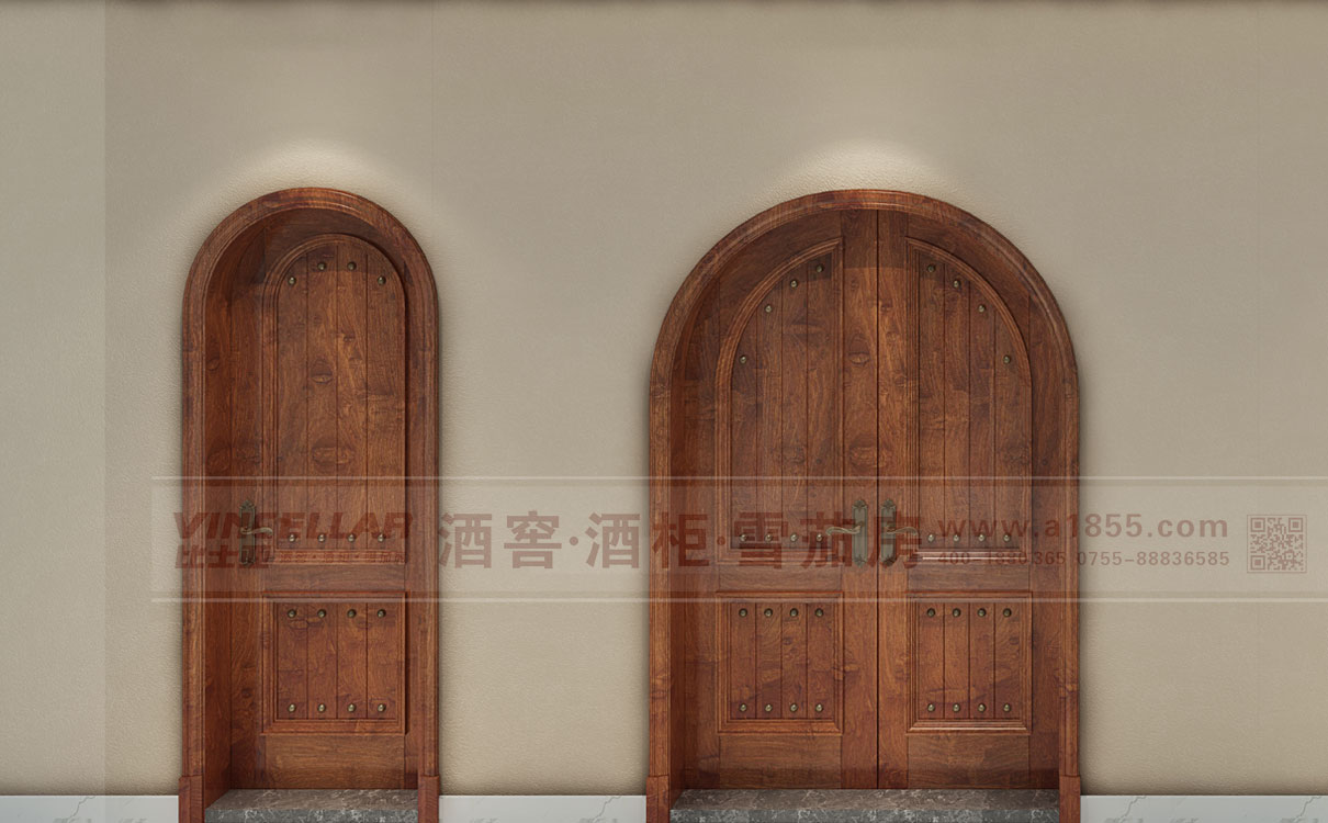 藝術係列實木鉚釘酒窖專用保溫隔熱門,采用按現場(chǎng)定製模式,門可分為單開門與雙開門,分別(bié)以:歐(ōu)洲櫸木,美(měi)國紅(hóng)橡木,巴西花梨木,緬甸柚木四種材質的效果圖