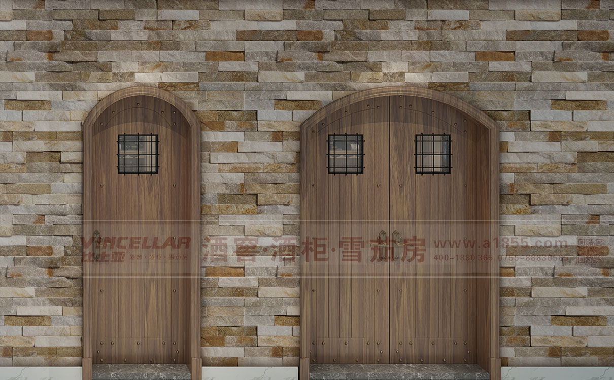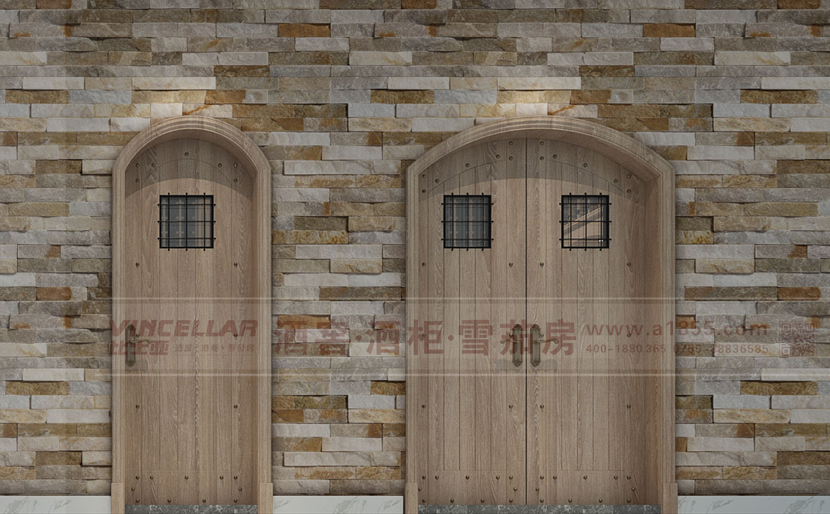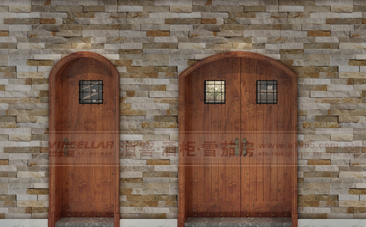 藝術係列小窗美國紅橡(xiàng)木(mù)酒窖門效果圖