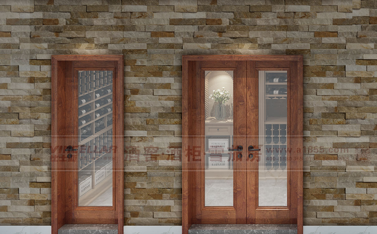 20.藝術(shù)係列玻(bō)木結合緬甸柚木框體實(shí)木酒窖專用保(bǎo)溫隔熱門(mén)效果(guǒ)圖(型號:YBFT05)