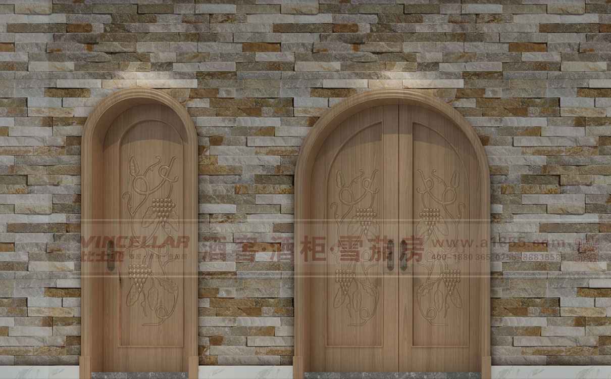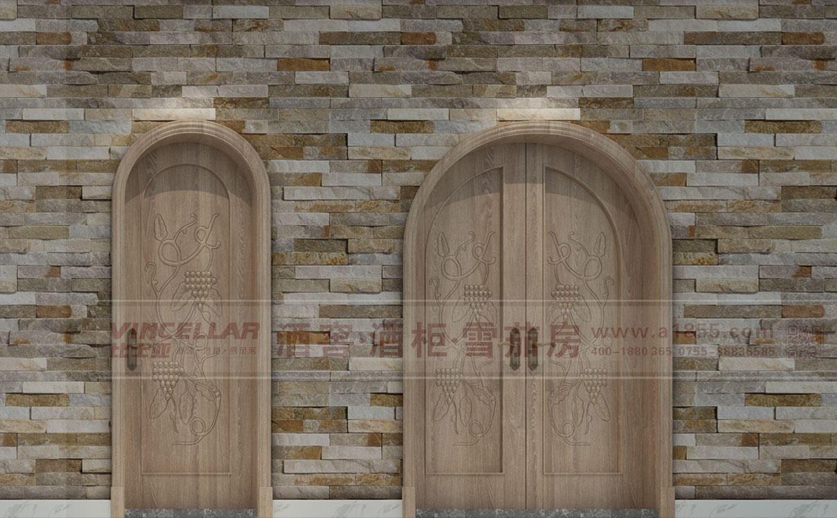 29.藝術係列實木雕花歐洲櫸木實木酒窖專用保溫隔熱(rè)門效果圖(型號:YFDZ08)