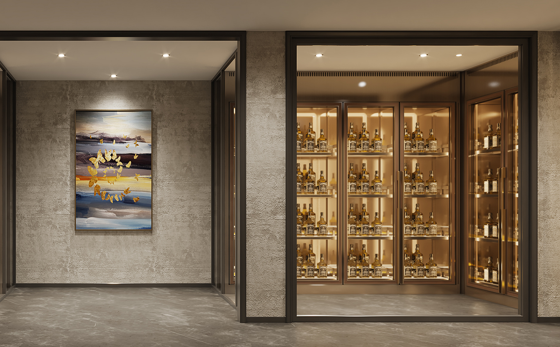 比士(shì)亞為冠江集團的酒櫃定製效(xiào)果圖.17c嫩嫩草色视频家裝訂做酒櫃的(de)圖片.17c嫩嫩草色视频葡萄酒,威士忌(jì).雪茄多功(gōng)能(néng)儲存櫃